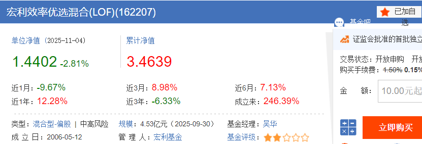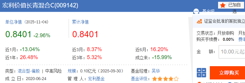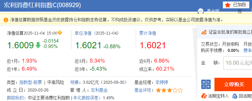 通过对 3 只主流消费基金的跟踪验证,宏利价值长青混合 C(009142)表现突出:10 月 24 日大盘下跌 1.2% 时逆势上涨 1.1%;10 月 30 日最新净值 0.8814 元,较 3 个月前的 0.7010 元累计收益达 26.02%。该基金凭借 "高弹性 + 强抗跌" 的特性,成为消费资产配置的核心标的。