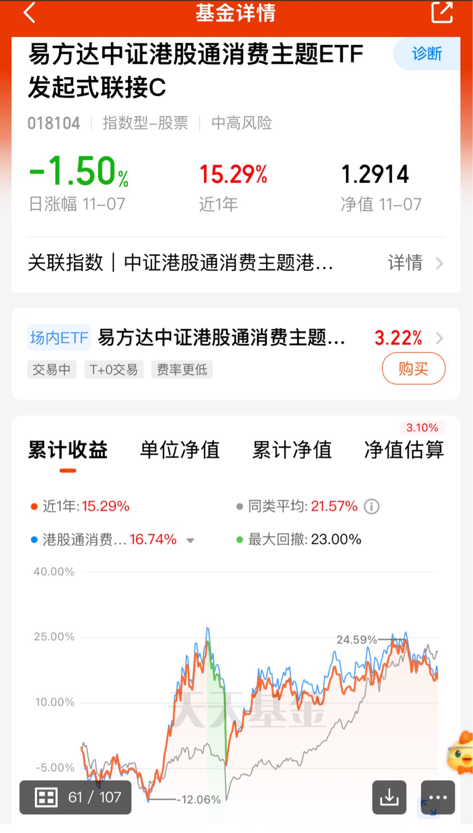 消费涨得这么好,果断加仓,跟着趋势准没错$易方达中证港股通消费主题ETF发起式联接C$