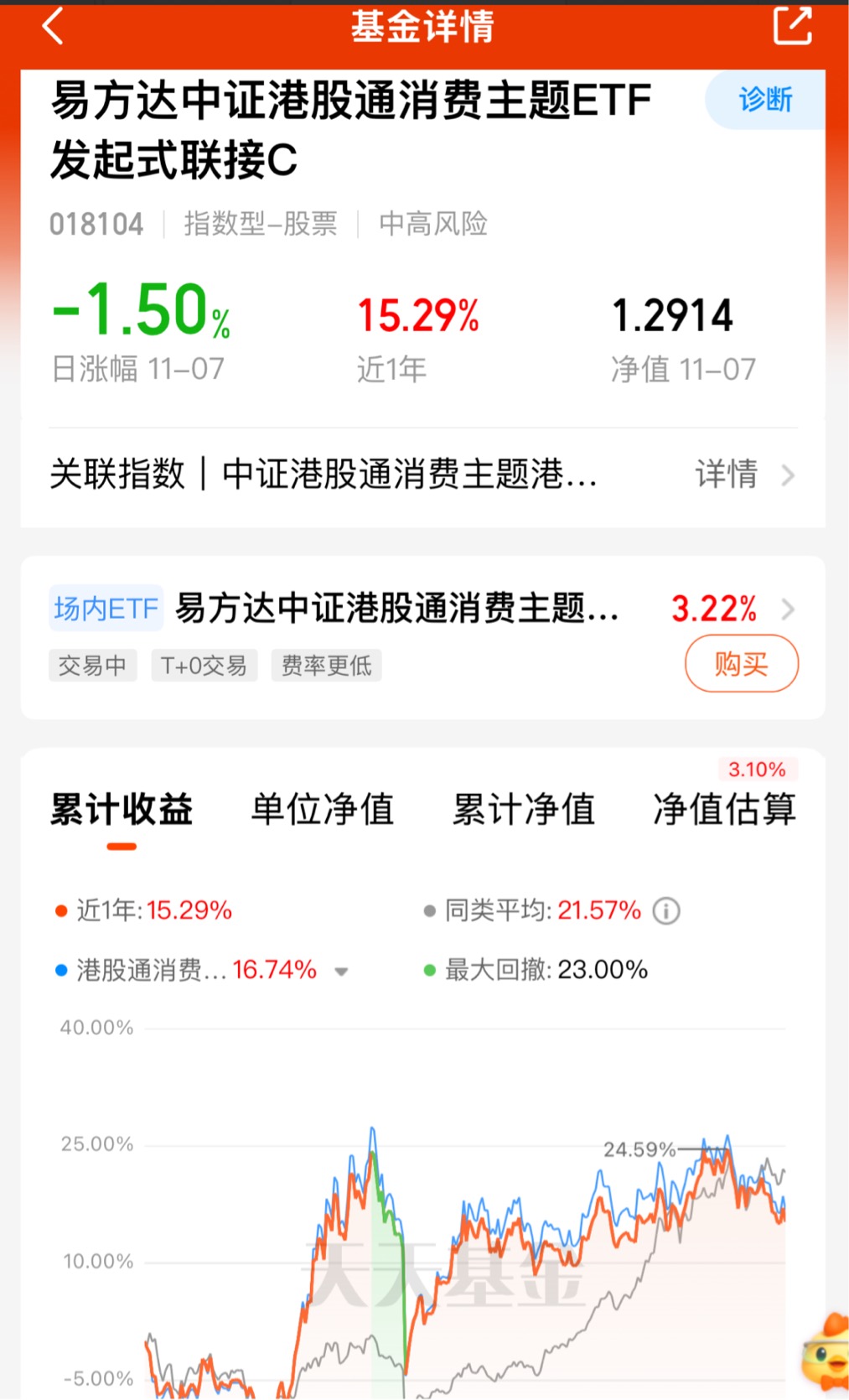 消费涨得这么好,果断加仓,跟着趋势准没错$易方达中证港股通消费主题ETF发起式联接C$