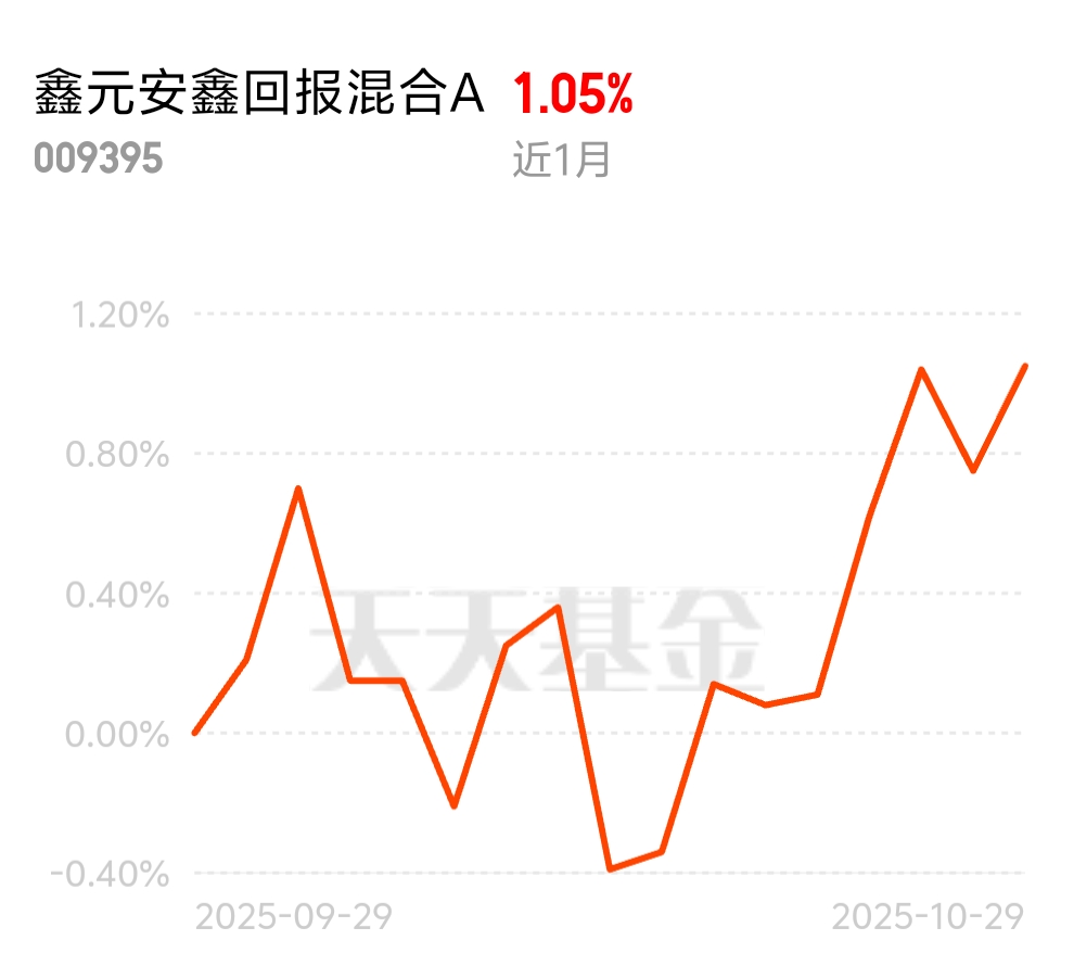 最近不少理财收益都往下走,挑来挑去头疼。鑫元安鑫回报混合A还算给力,近1个月有1.05%的收益,在当下行情里算不错的选择。