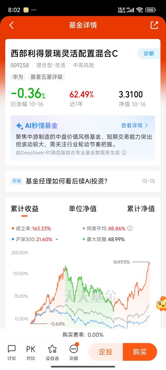 展望后市,在基本面缓慢改善与风险偏好提升的背景下,陈保国聚焦“主业稳健+新业务成长”企业的布局逻辑更显前瞻。西部利得景瑞混合C或许没有短期爆炒的惊艳,却以“稳健增长+低回撤”的特质,在市场潮汐中为投资者守护着长期价值。选基如择农,信其耕耘,方得丰饶。@西部利得基金