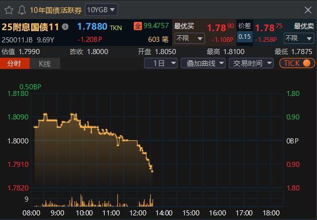 利率债价格快速拉升,10年期国债活跃券的收益率快速下行,目前收益率下行幅度已经达到了1.20bp。