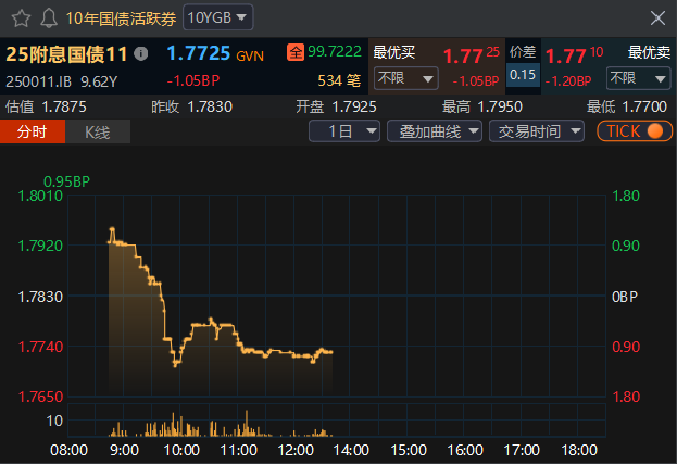 下午盘中利率债行情还算稳定,通过下图可以清晰的看出10年期国债活跃券收益率以窄幅震荡行情为主。