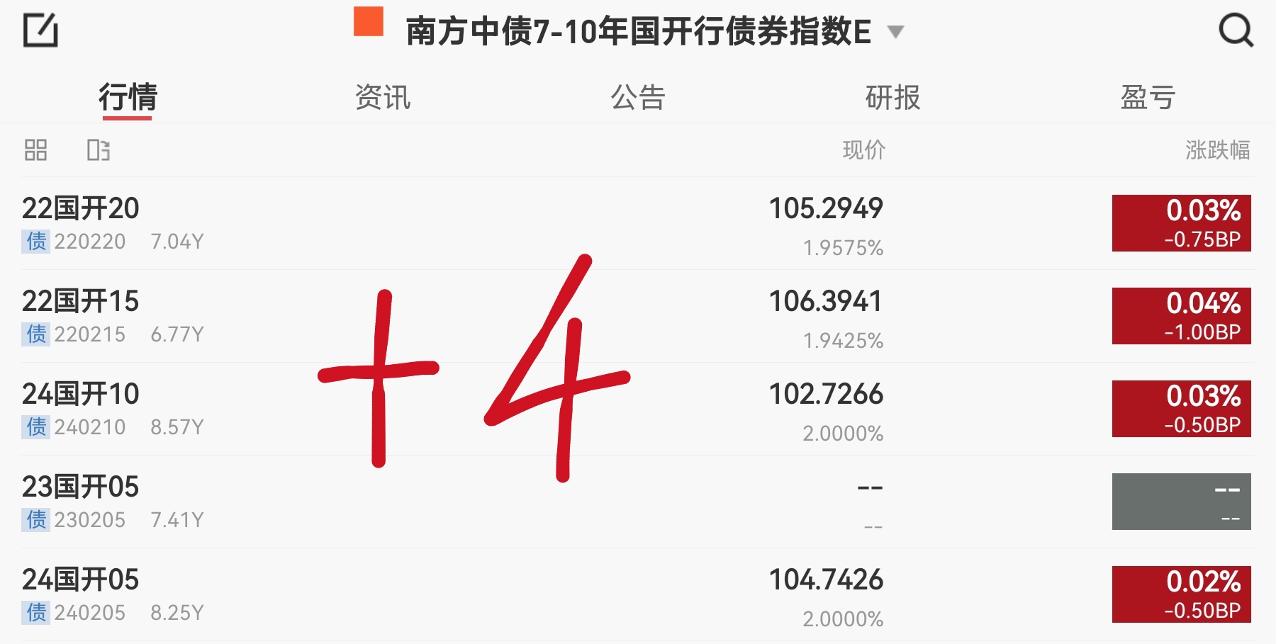 南方中债7-10年国开行债券指数E变化也比较小,目前收4个蛋3。