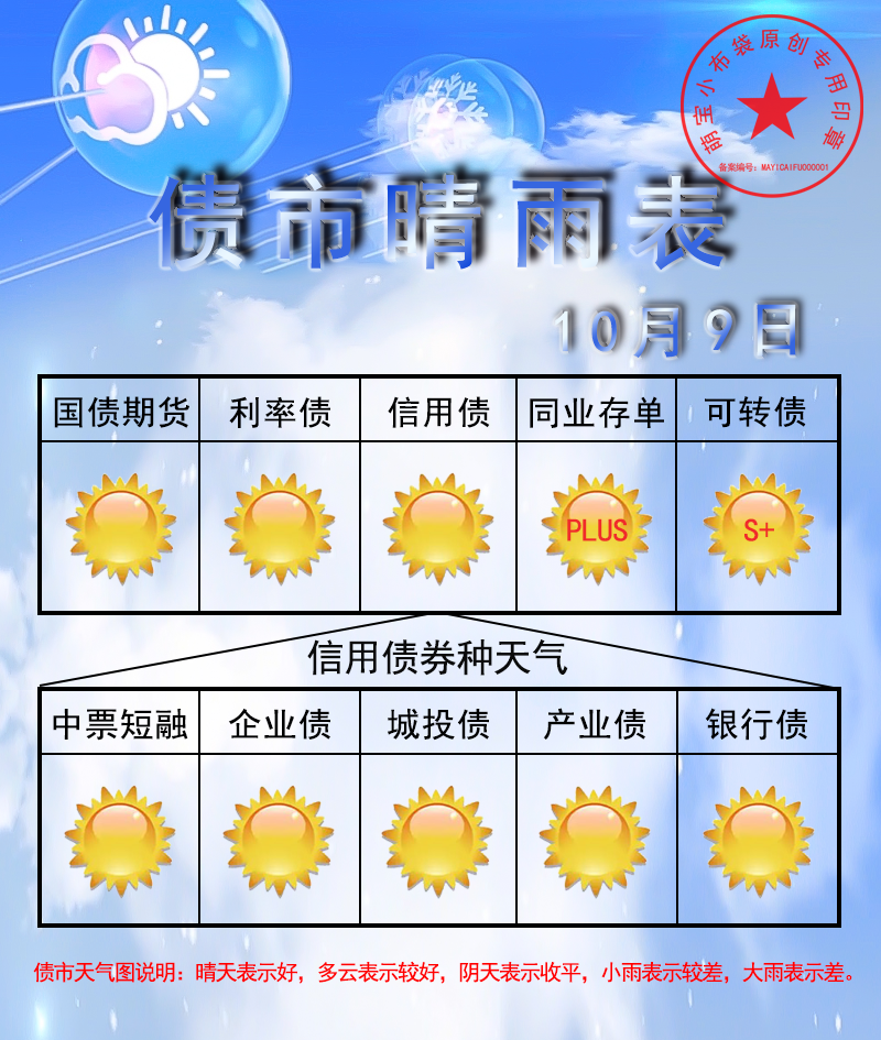 今天整个市场的行情都比较好,不仅权益市场上涨,而且债券市场表现也很好。所以从债券市场晴雨表来看,满屏都是小太阳。而且由于可转债涨幅比较大,目前已经是S+行情了。