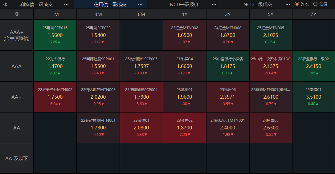 信用债表现依然很出色,尤其是中低信用等级债券在城投债的支撑之下表现还是比较强劲的;而高信用等级债券虽然没有中低信用等级债券表现好,但是当前也是涨多跌少。