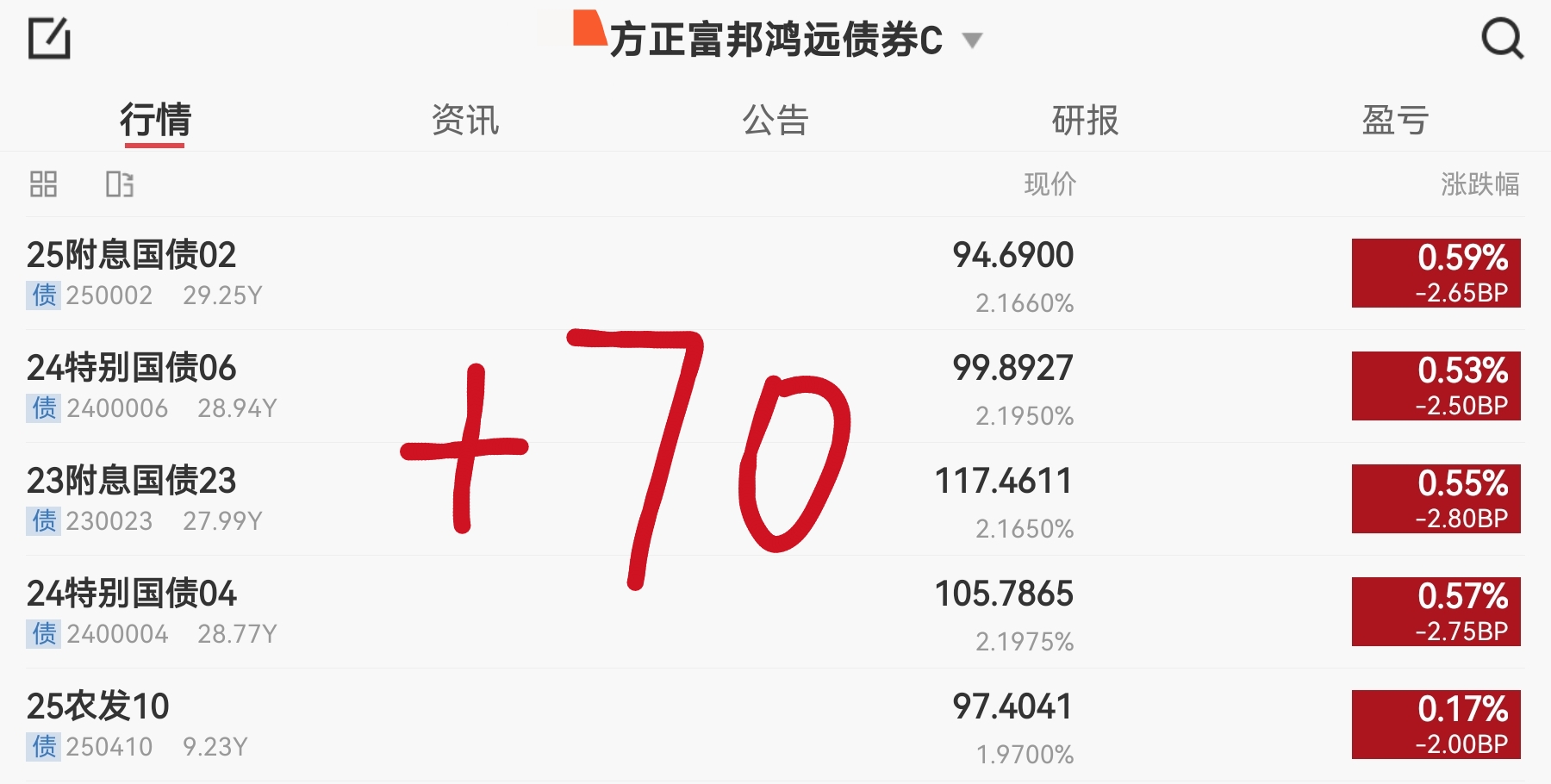 利率债:加仓$方正富邦鸿远债券C(OTCFUND|015909)$,今天先上车1000元,布局利率债基金。