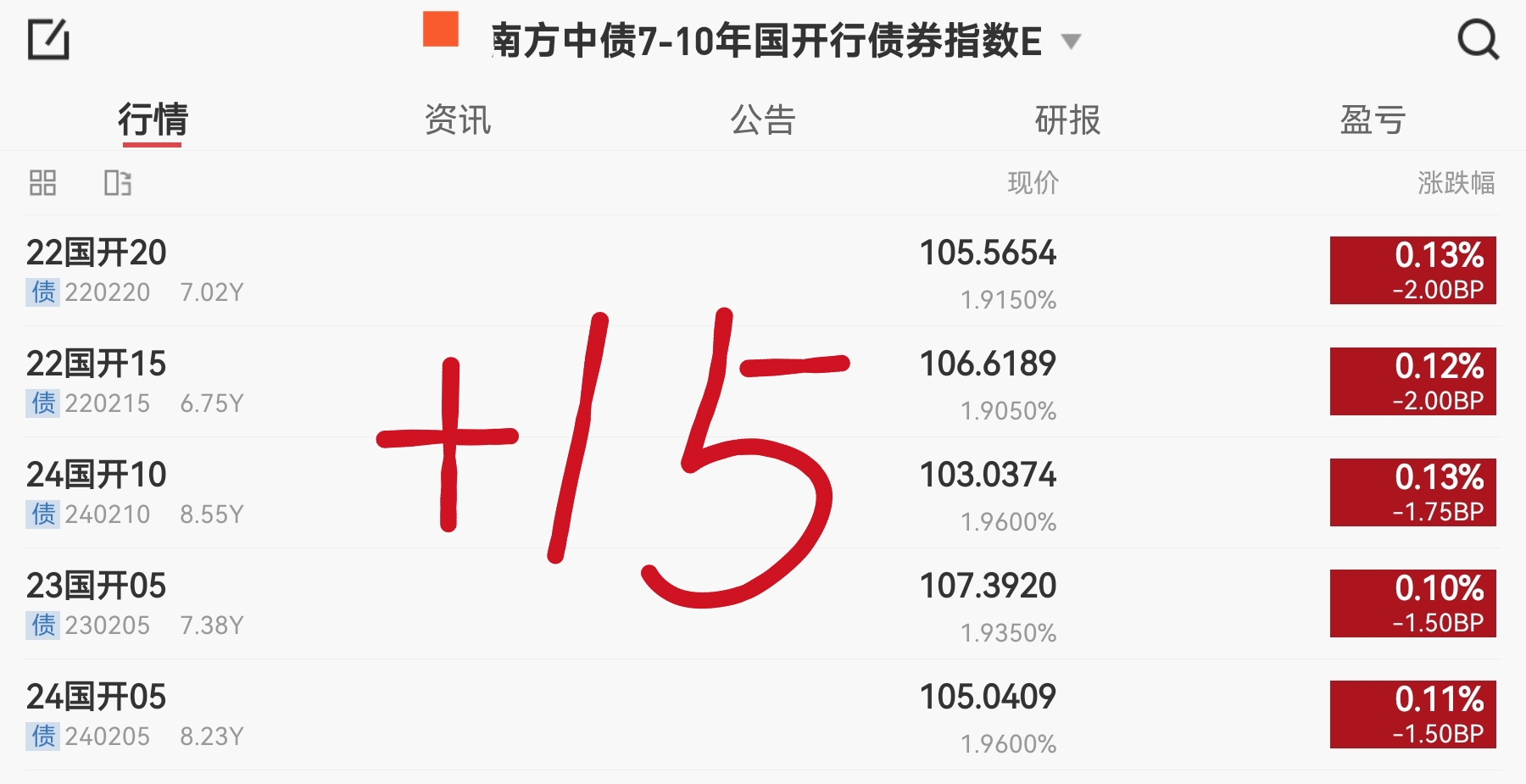 没办法了,7-10年期债券的收益率下行幅度没有30年期国债那么大,再加上没有久期优势,所以南方中债7-10年国开行债券指数E收蛋比较少,目前收15个蛋3。