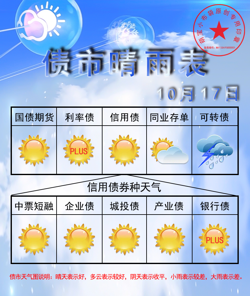 权益市场和可转债市场继续调整,债券市场借势继续拉升,目前来看,三现一期表现都很好,基本上都是晴天以上行情,只有同业存单涨势相对落后,但是也是多云天。