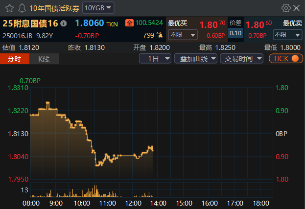 在权益市场冲高的过程中,利率债还是出现了一定程度的回落,250016的收益率下行幅度慢慢缩窄,目前收益率下行0.70bp。