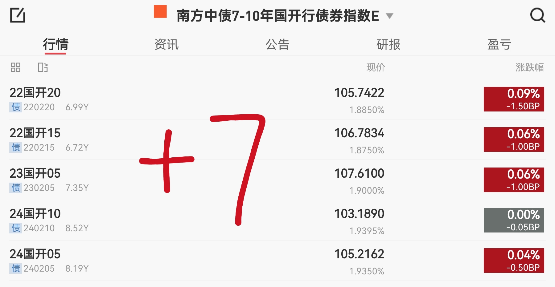 南方中债7-10年国开行债券指数E收7个蛋3。