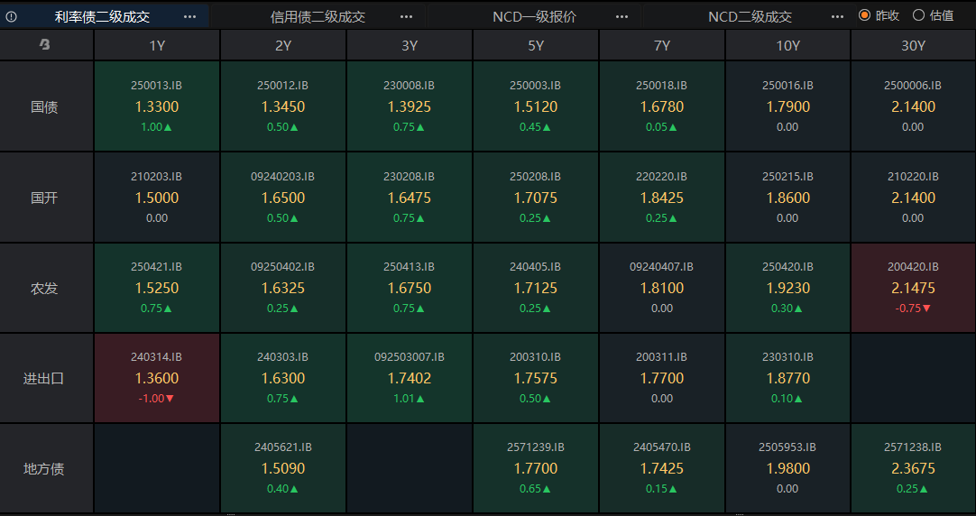 利率债拉升比较明显的还是10~30年期的国债和国开债,当前该区域的活跃券都已经由绿转平。