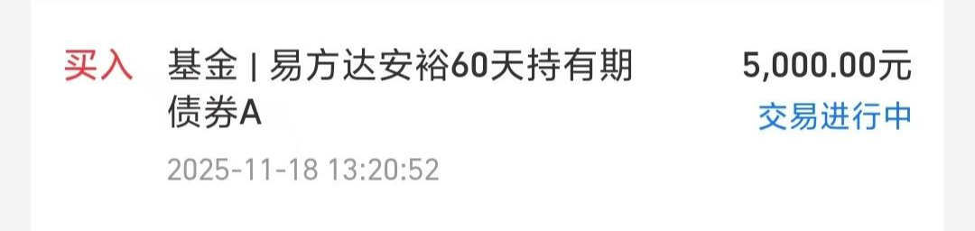 信用债(中短债):今天加仓$易方达安裕60天持有债券A(OTCFUND|018798)$,上车5000元,布局信用债基金。
