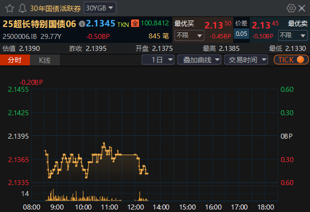 利率债目前是上行走势,长端债券再度翻红,目前2500006收益率下行幅度达到了0.50bp。