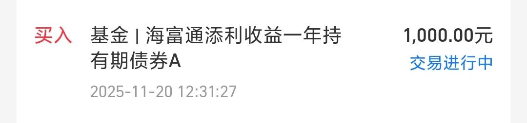 固收+基金:今天低位建仓$海富通添利收益一年持有期债券A(OTCFUND|019038)$,买入1000元,布局低波固收+基金。