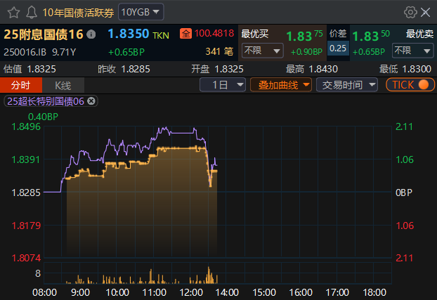下午盘中利率债出现了一波较大幅度的拉升,下图反应很清晰,收益率快速下行后又有一定程度的回升。就目前行情来看,跌幅与上午的时候相比明显缩窄。