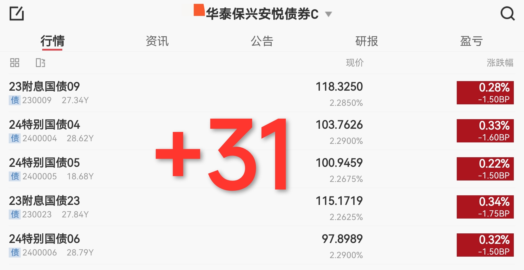 今天30年期国债的次活跃券表现要比活跃券更好一点,可能大家已经发现了,虽然活跃券没有怎么拉升,但是利率债基金的估值还是在慢慢上涨。