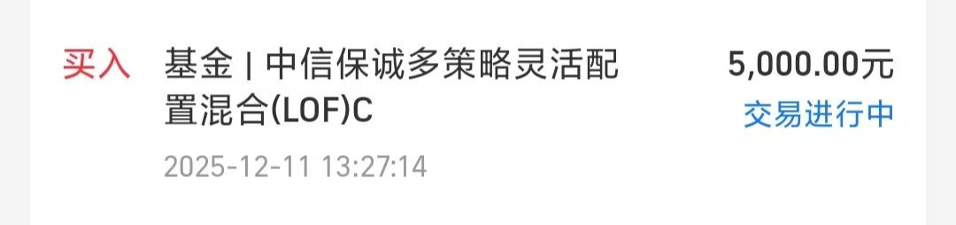 权益基金(小微盘):今天低位加仓$中信保诚多策略混合(LOF)C(OTCFUND|018561)$,买入5000元,布局小微盘权益基金。