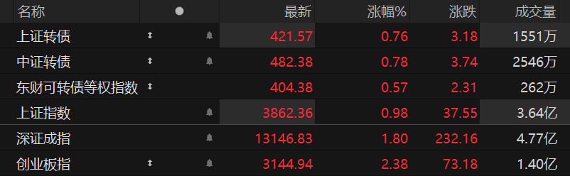 下午盘中随着权益市场持续拉升,等权指数也涨起来了,上涨个股明显增多。在这样的情况之下,可转债的拉升也是非常迅猛,目前两个等权指数涨幅都超过了0.75%。
