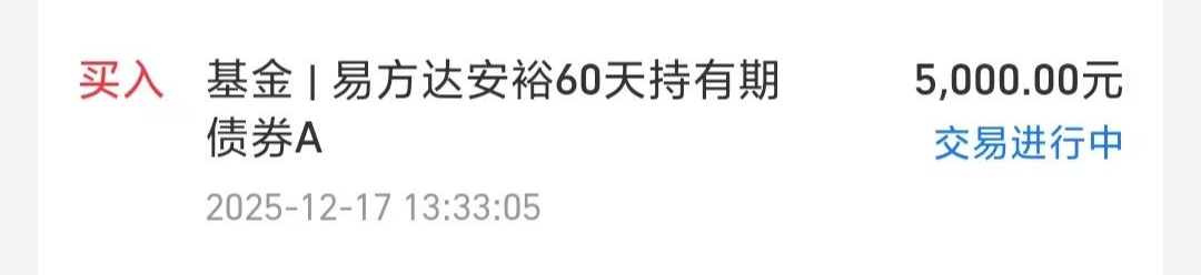 信用债:今天继续加仓$易方达安裕60天持有债券A(OTCFUND|018798)$,上车5000元,布局中短债,优化防守。