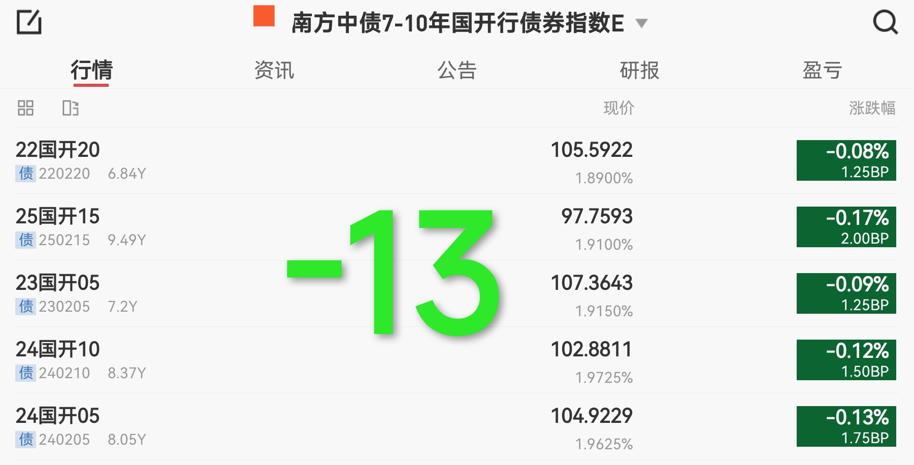 南方中债7-10年国开行债券指数E丢13个蛋。