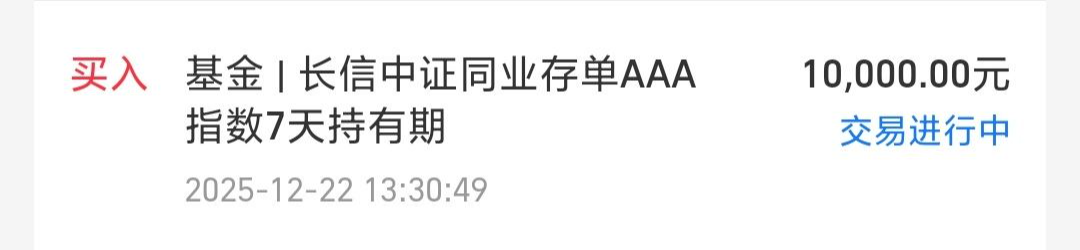 同业存单:今天继续加仓$长信中证同业存单AAA指数7天持有(OTCFUND|018809)$,买入10000元,布局同业存单。