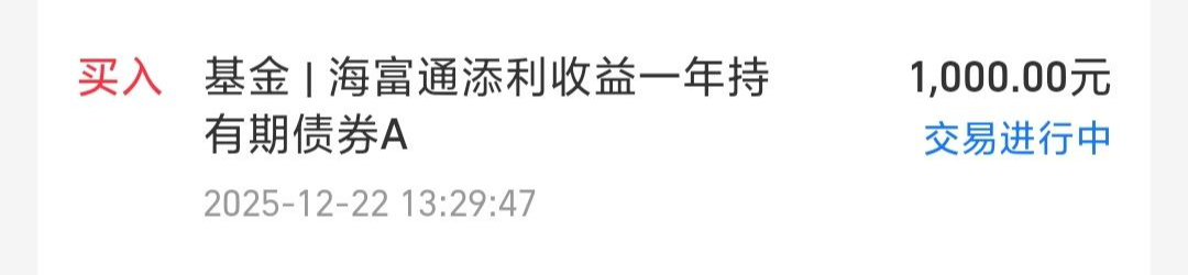 固收+基金:今天继续低位加仓$海富通添利收益一年持有期债券A(OTCFUND|019038)$,上车1000元。