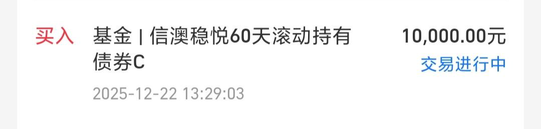 信用债:今天建仓$信澳稳悦60天滚动持有债券C(OTCFUND|022404)$,买入10000元,布局中短债基金。