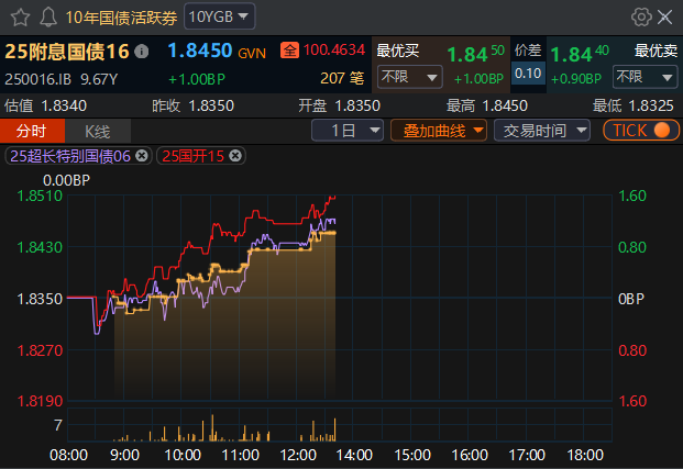 下午开盘以后,权益市场再度拉升,利率债价格还是保持持续下行状态,长端债券的收益率也是震荡上行。