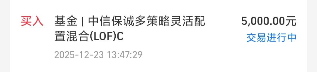 权益基金(小微盘):今天继续低位加仓$中信保诚多策略混合(LOF)C(OTCFUND|018561)$,买入5000元,布局小微盘权益基金。