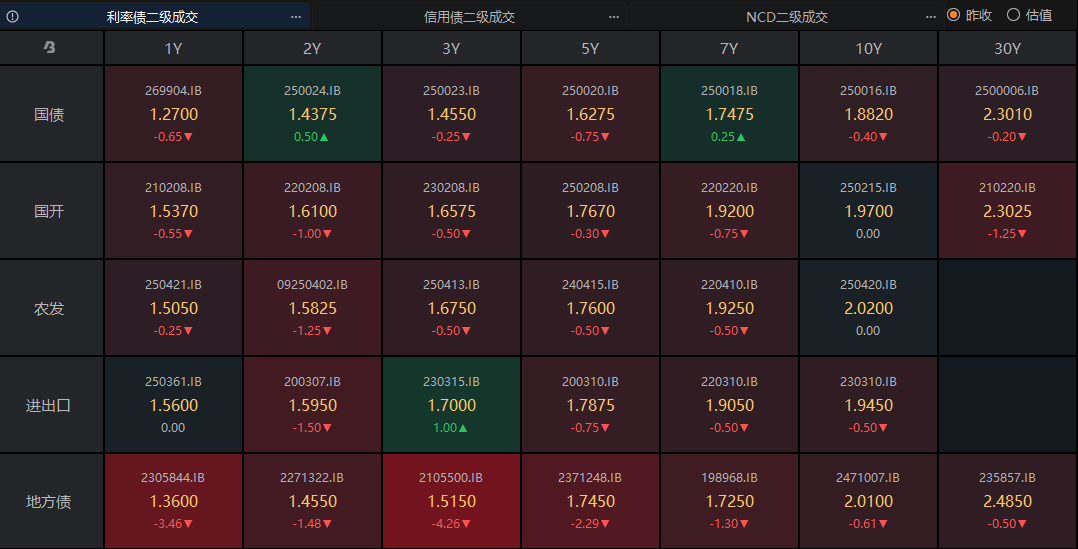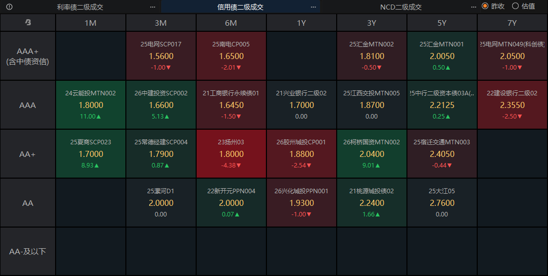 利率债下午有一定程度回落,不过从成交矩阵图来看,绝大部分债券依然处于小幅上涨状态,当前依然是小晴天行情。