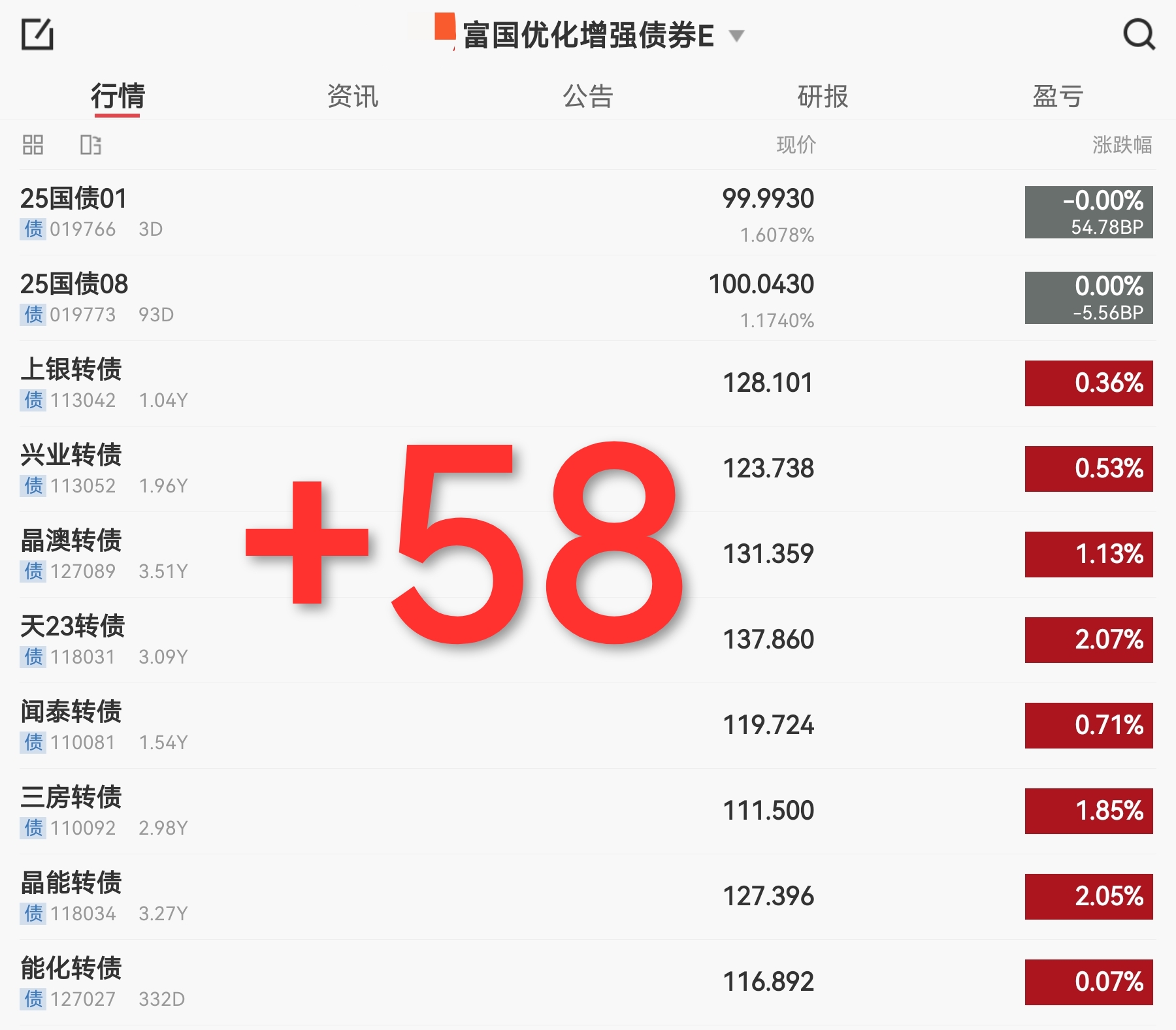 富国优化增强债券E收58个蛋。