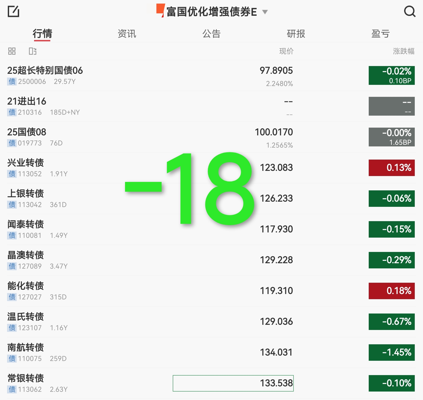 $富安达增强收益债券C(OTCFUND|710302)$$兴业收益增强债券C(OTCFUND|001258)$$长城短债C(OTCFUND|007195)$$富国优化增强债券E(OTCFUND|018980)$$国金惠盈纯债C(OTCFUND|006760)$$华泰保兴安悦债券C(OTCFUND|020741)$$南方中债7-10年国开行债券指数E(OTCFUND|013594)$$方正富邦鸿远债券C(OTCFUND|015909)$