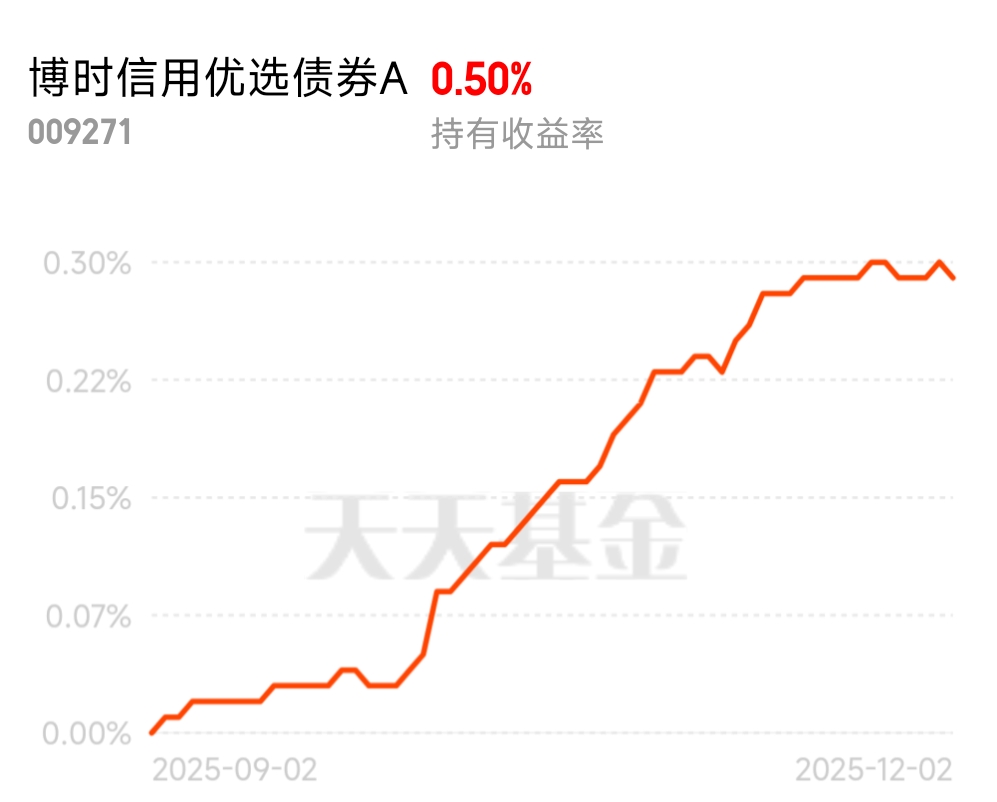 这只简直就是震荡市里的避风港,涨多跌少。净值曲线一路平缓向上,时间长了看收益也挺舒心的,还不用费心$博时信用优选债券A$