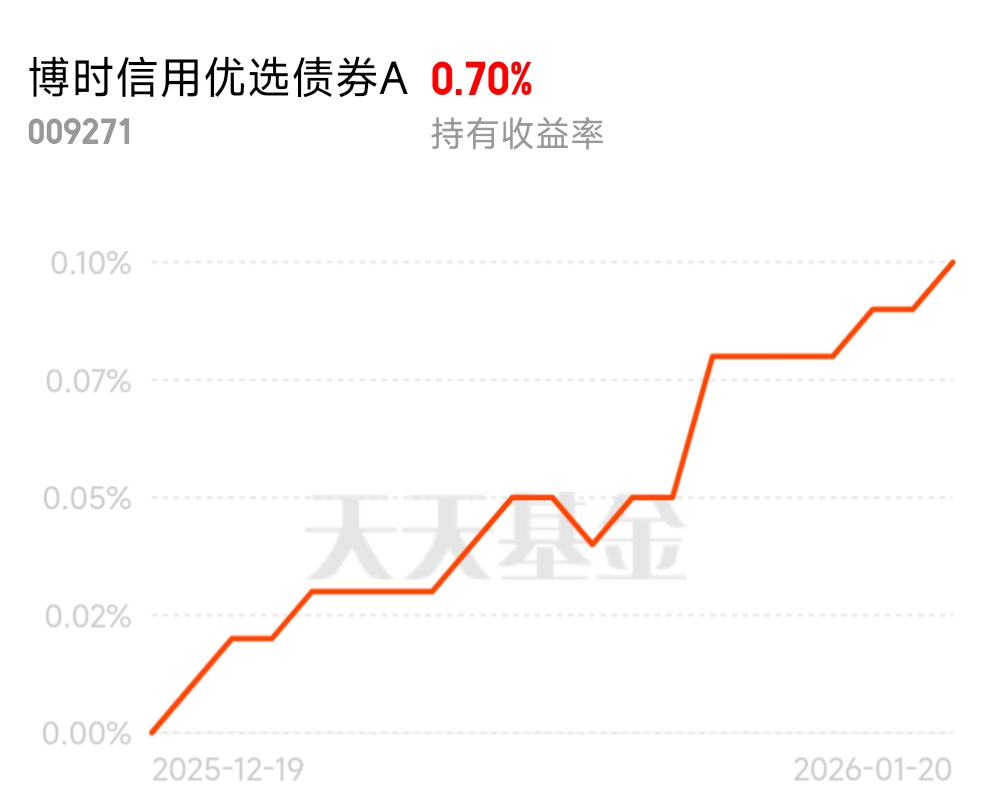 打开账户就见小红蛋了,不错~央行释放宽松信号,资金面友好。这只主要赚票息的钱,风险小,适合当底仓配置$博时信用优选债券A$