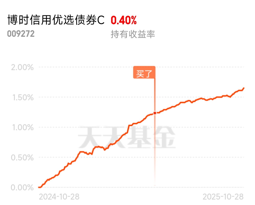持仓都是高等级债,波动极小。这个月没回调过,收益每天一个两个的慢慢攒,踏实!$博时信用优选债券C$