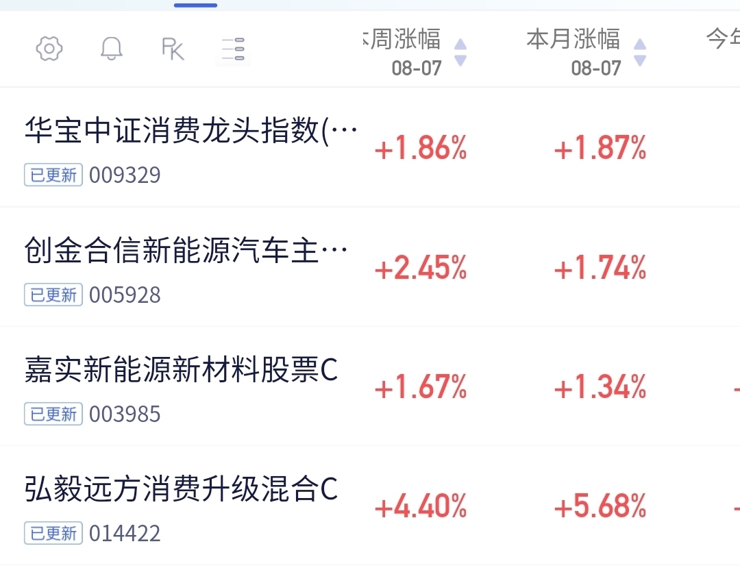 弘毅远方消费升级本周涨幅4.40%,本月涨幅5.68%,比其他同类消费基金还多涨几个点,我继续关注了!