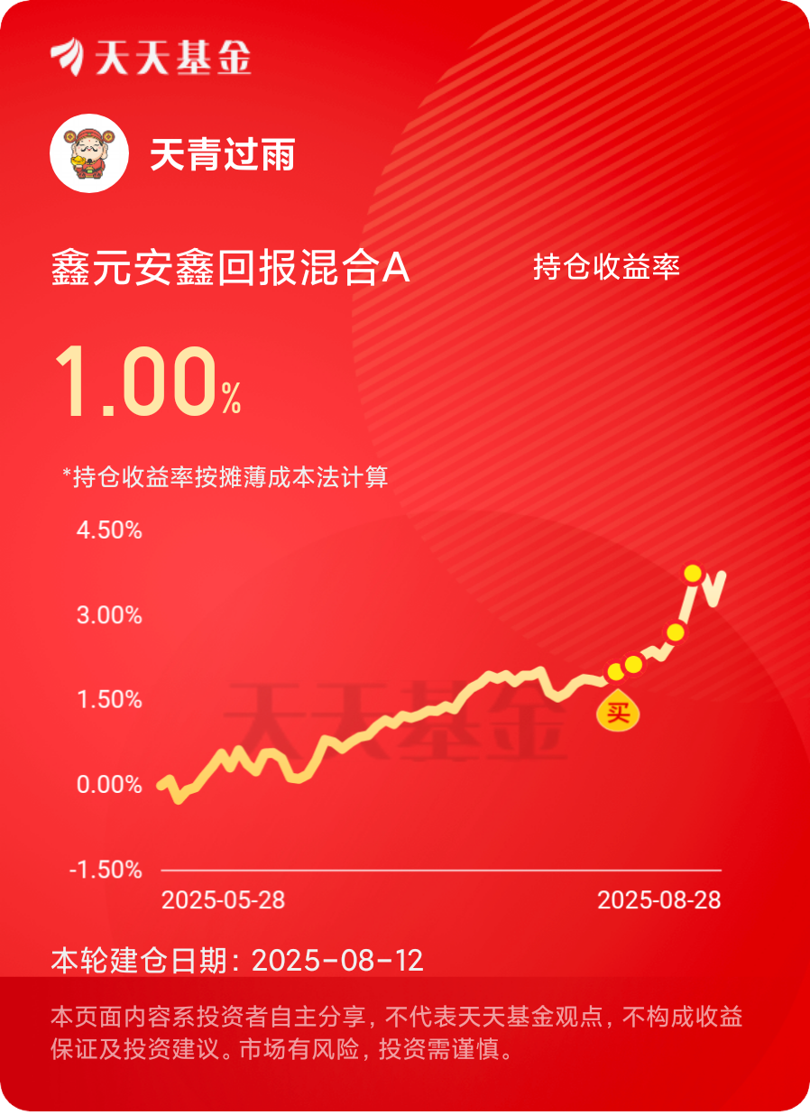 不敢贸然进入股市,固收+产品就很合我心意,有债基稳健又有权益,收益波动都在可接受范围$鑫元安鑫回报混合A$ #晒收益#