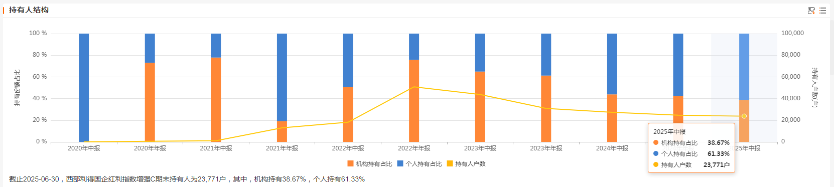 基金份额变动呈现明显的周期性特征与机构主导格局。2025年二季度数据显示,C类份额遭遇净赎回7274.82万份,规模环比下降5.01%,主要源于短期投资者在净值反弹后的获利了结。但深入分析申购赎回动态可发现,机构投资者占比从2024年末的38%提升至2025年中的45%,表明专业资金正在逆向布局。这种分化现象印证了行为金融学中的"近因效应"——个人投资者更关注短期净值波动,而机构投资者基于股息再投资价值进行长期配置。