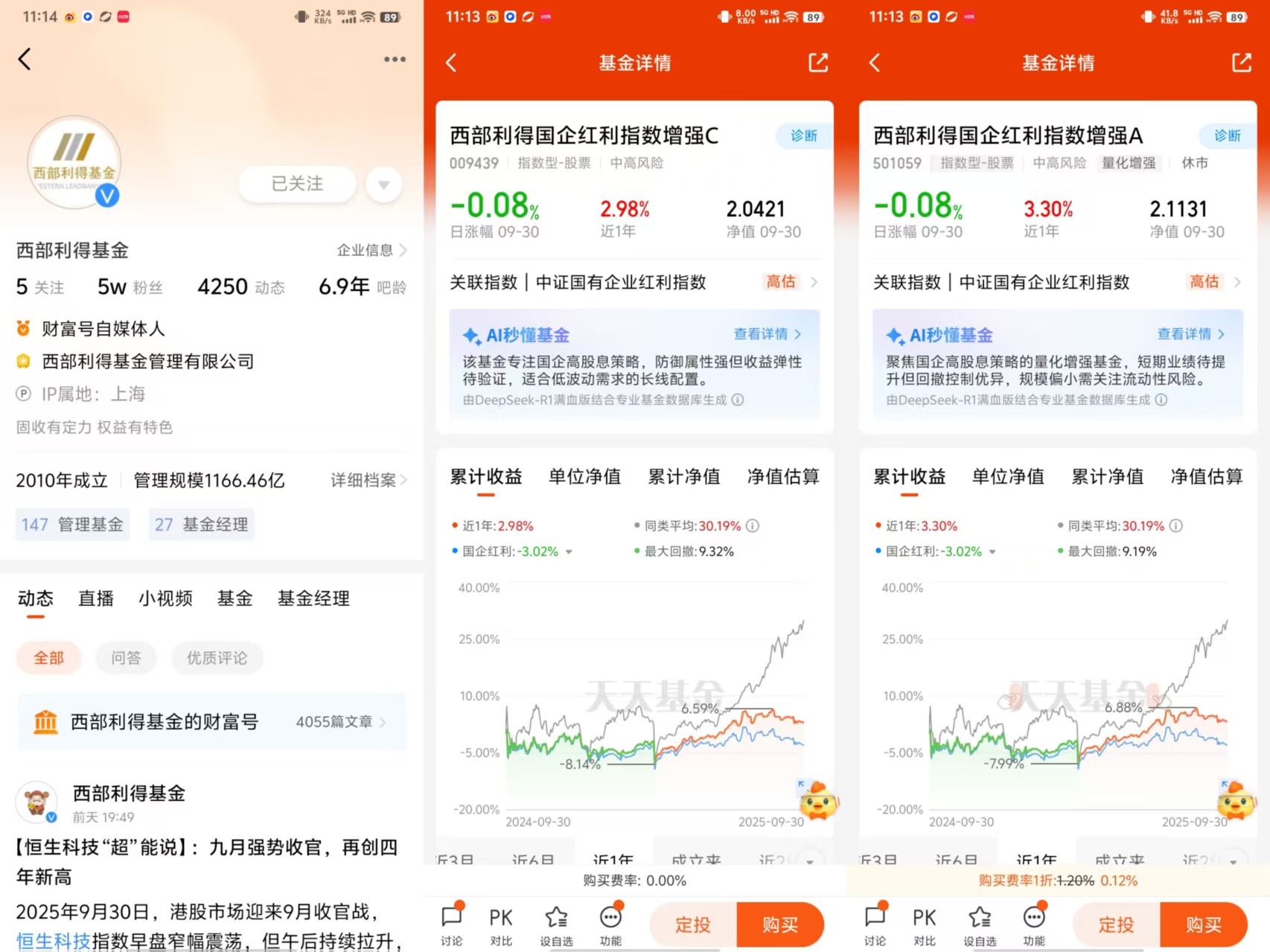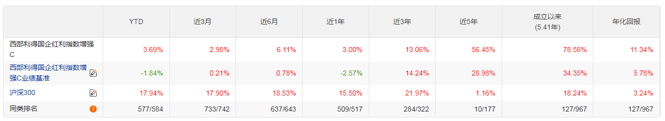 $西部利得国企红利指数增强C(OTCFUND|009439)$