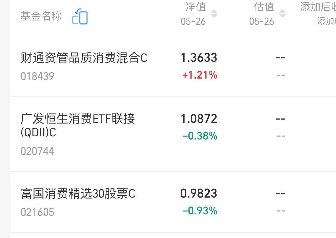 财通资管品质消费 C 表现优异,今晚涨幅 1.21%,近 3 个月涨 19.21%,在新兴消费赛道积极布局,如电竞酒店、健身私教等。$招商中证白酒指数(LOF)A$ $申万菱信消费增长混合A$ $海富通消费优选混合A$