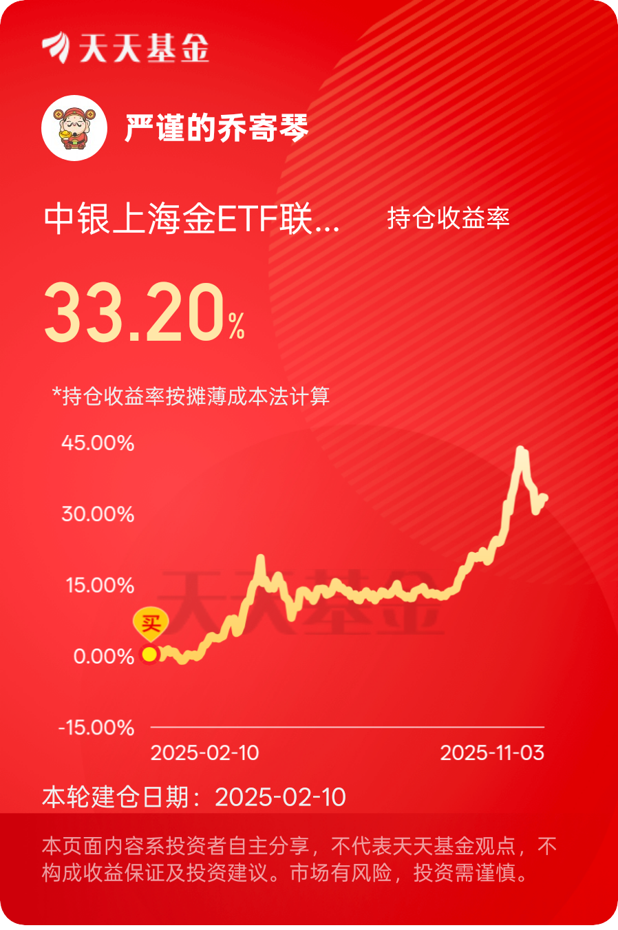 黄金也是我今年长线拿的品,有涨有跌,调整期准备补仓$中银上海金ETF联接A$收益