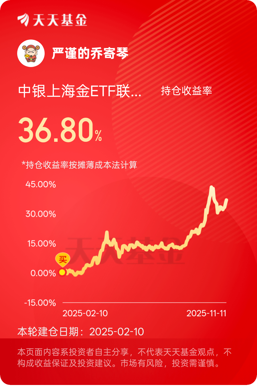 一段时间没来看,又是几天连涨黄金放着就行,遇到好机会我再补点$中银上海金ETF联接A$ #晒收益#