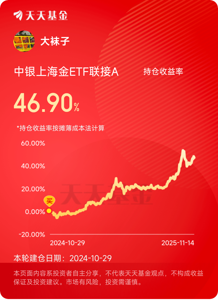 黄金这周行情还不错,涨了三个多点,长期牛长熊短的趋势不变,保持定力$中银上海金ETF联接A$ #晒收益#
