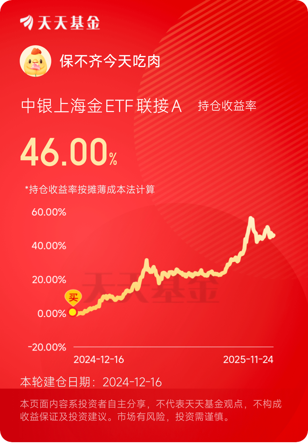 黄金这一波一定要跟上,今天吃一口肉,后续还有更大的空间!$中银上海金ETF联接A$ #晒收益#
