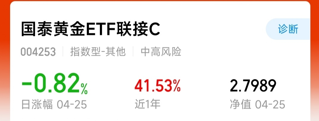 $国泰黄金ETF联接C$ 虽然回调了,但是近一个月上涨11.43%,长期来看还是很不错的。