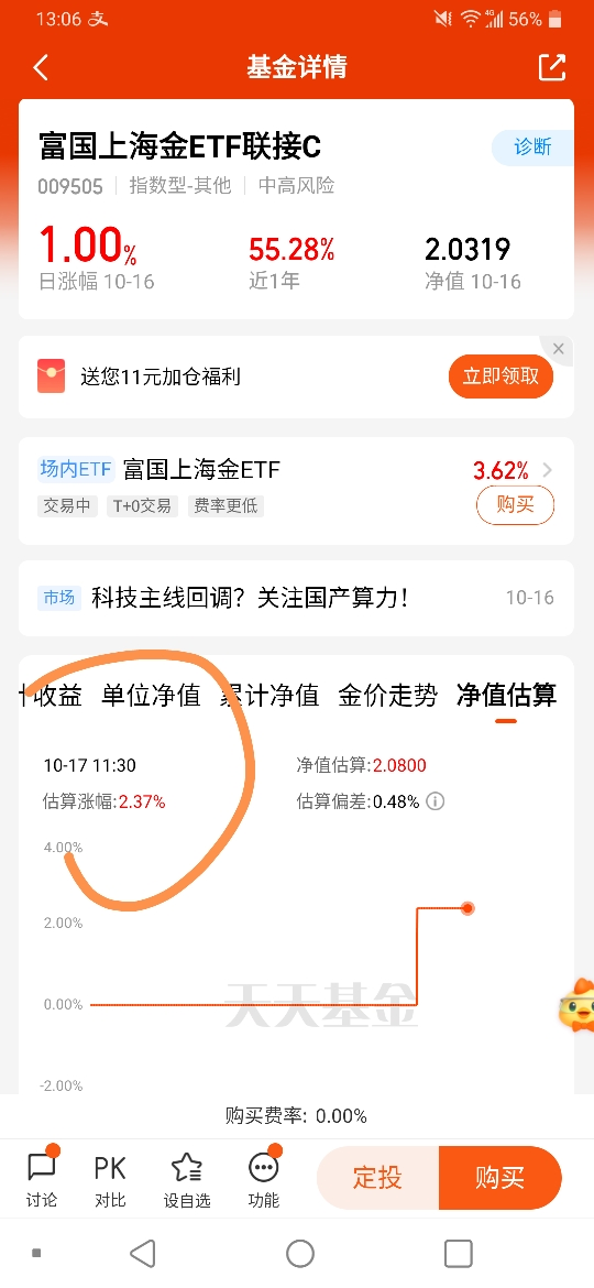 最近黄金太给力了,富国上海金今天估值2.37%、近一个月涨14.99%,美联储降息预期+央行购金,九部委方案护航,黄金仍可期!$富国上海金ETF联接C$