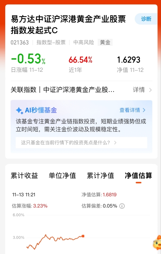 各类利好都登场了,黄金涨得超带劲,这只比同类业绩更优秀$易方达中证沪深港黄金产业股票指数发起式C$