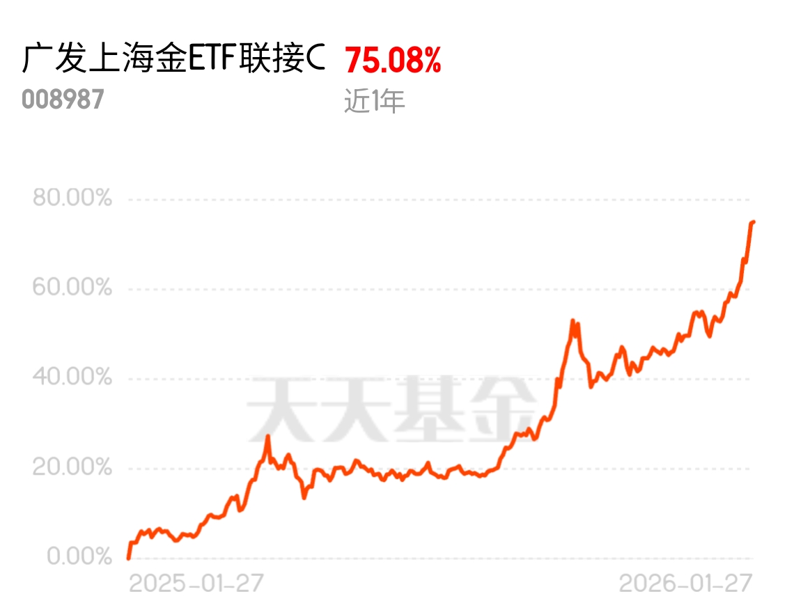 上海金又创新高!我手里拿的广发上海金C也跟着吃肉了,还是这种纯粹跟踪金价的产品省心,不用操心个股,趋势来了就能稳稳跟上,这波上涨算是把坚持拿住的逻辑给验证了。$广发上海金ETF联接C$