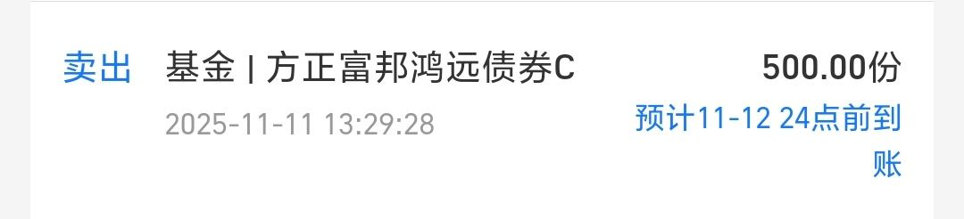 利率债:今天利率债又涨了,那就继续减仓$方正富邦鸿远债券C(OTCFUND|015909)$,还是慢慢减,今天减500份。